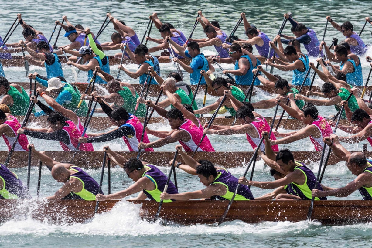Competitors take part in a dragon boat race. The races are part of a programme of events organised ahead of the 20th anniversary of Hong Kong’s handover from Britain to China, which falls on 1 July