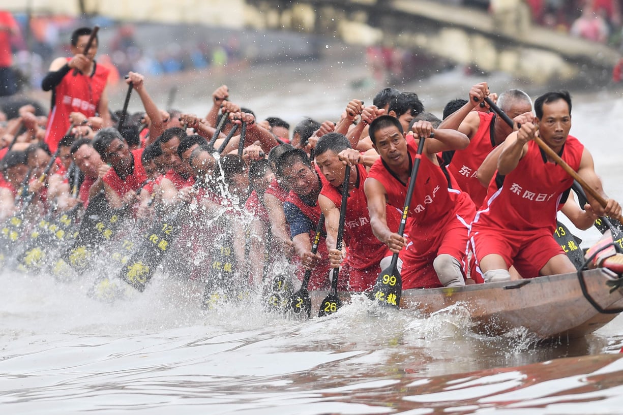 Participants compete in a dragon boat race held to celebrate the Duanwu Festival