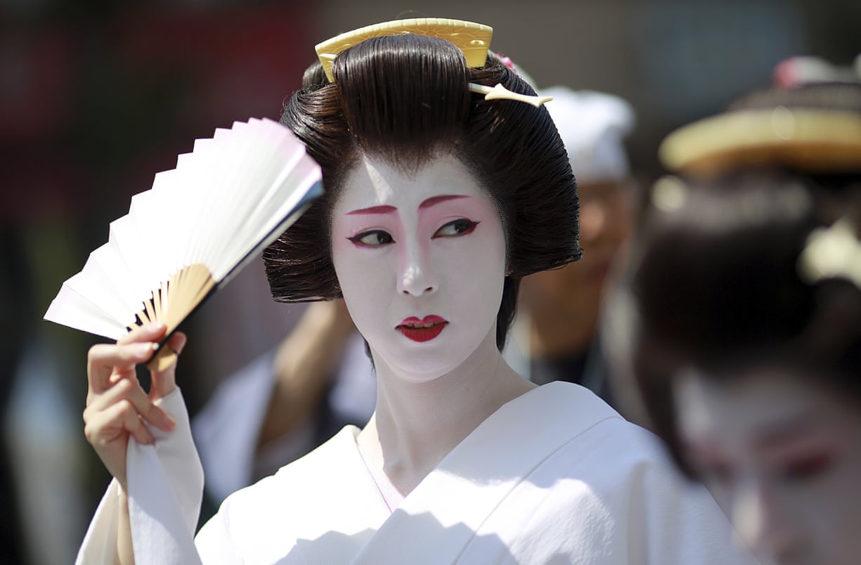 A geisha woman parades near the Asakusa shrine in the Sensoji temple before the annual Sanja festival