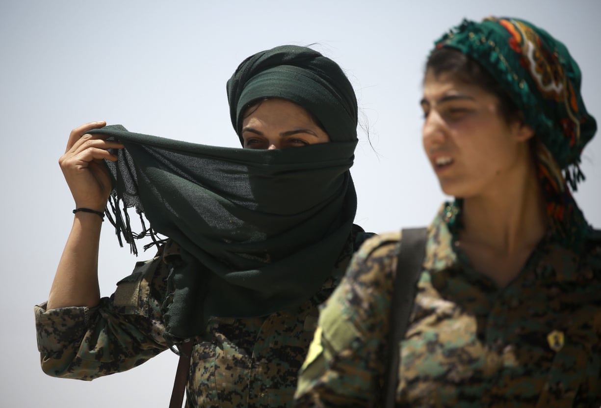 Members of the Syrian Democratic Forces take up positions less than a mile from the al-Meshleb neighbourhood of Raqa as they try to advance further into the Islamic State stronghold, two days after entering the northern city