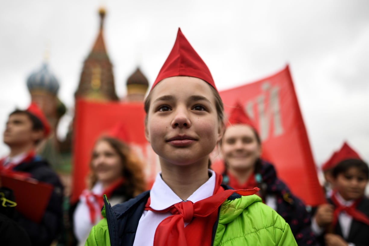 Children attend their official initiation into the Young Pioneers – a communist youth group created during the Soviet era for 10- to 14-year-olds – in Red Square
